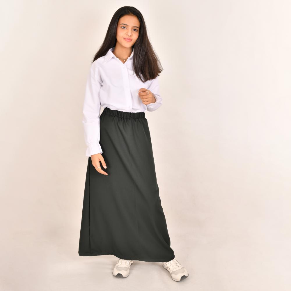 تنوره مدرسه متوسط زيتي توفر الراحة والأناقة للفتيات بنفس الوقت