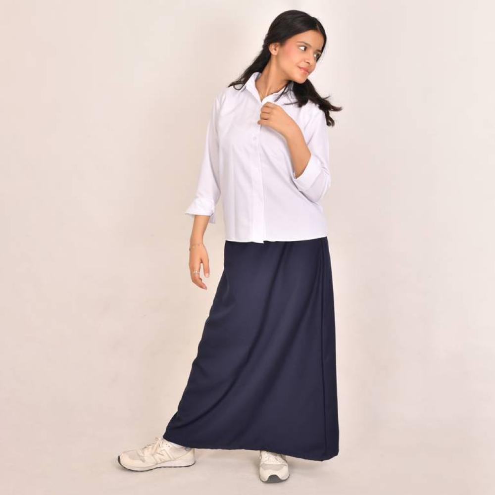 تنورة بحزام مطاطي باللون الكحلي - ثانوي