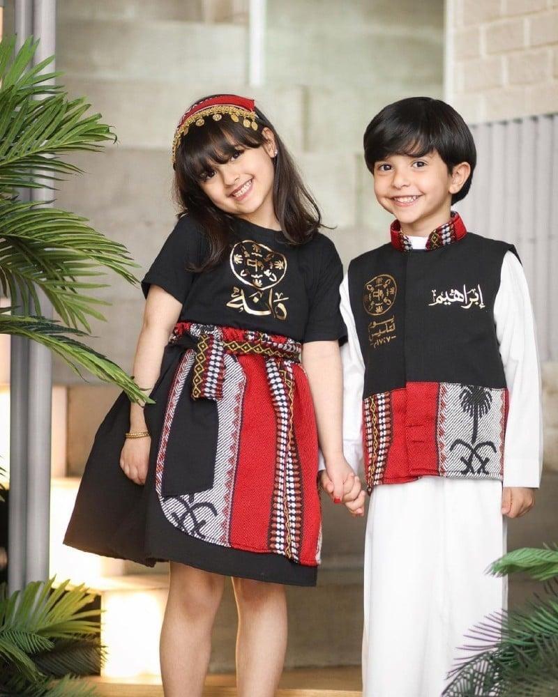 طقم يوم التأسيس بناتي150 تنوره سدو + تيشرت الهويه*تنوره مع رسوم السدو وتيشرت شعار يوم التأسيس* تصميم بالاسم مع شعار التأسيس المقاس/ بالعمرالمقاسات تناسب الأحجام الحنيفه والمتوسطة