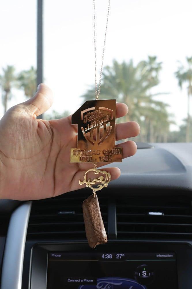 تعليقة سيارة شعار الاتحاد مع الاسمتعليقة سيارة مطلية بالذهب عيار 21مصنوعة من مادة الكوبر باعلى معايير الجودة ويوجد عليها طبقة حماية لضمان حفض الطلاءتم صنع هذه القطعة باحدث اجهزة الليزر ولذلك اعطت هذا المظهر الفريد.الطول: 8.5 سمالعرض: 5.5 سم