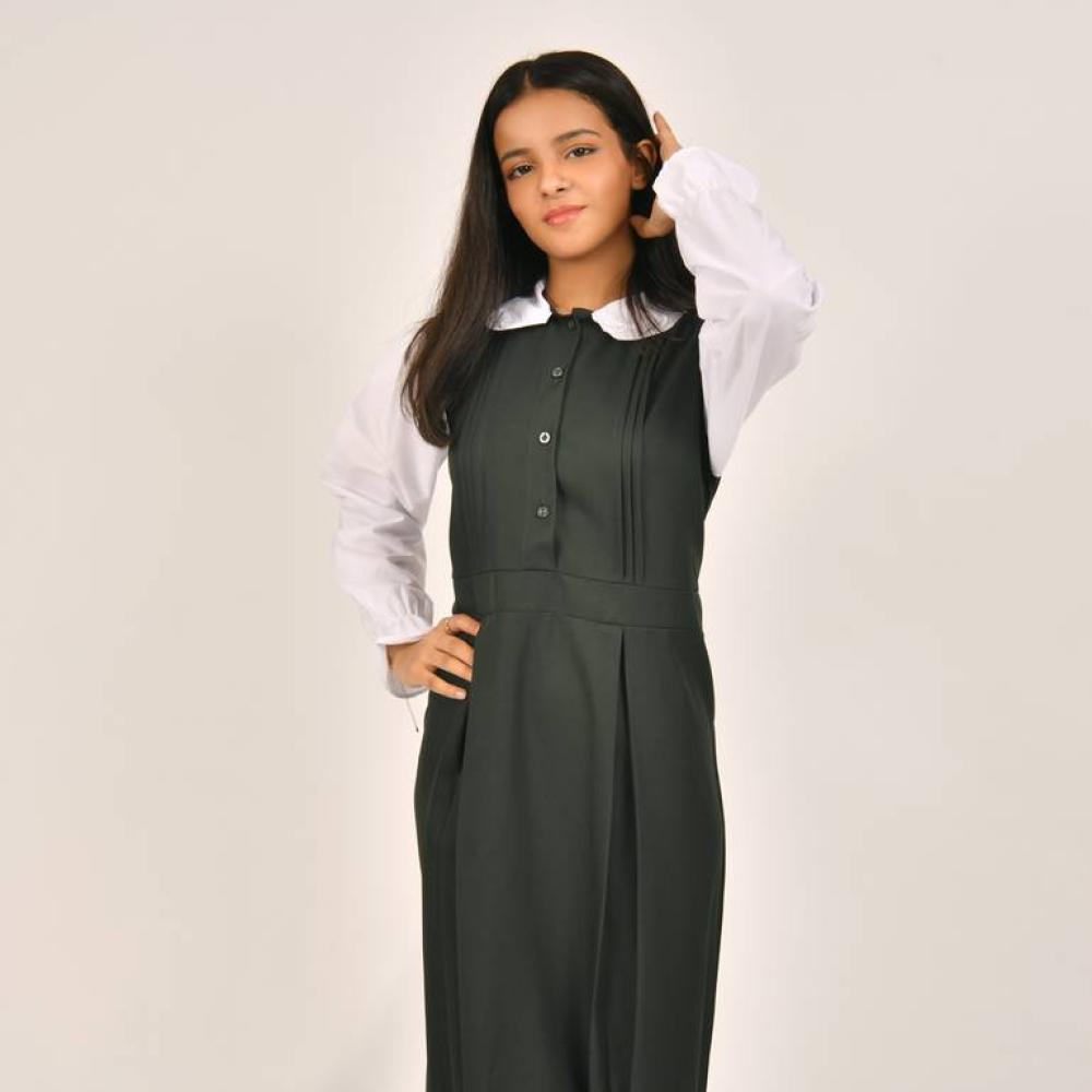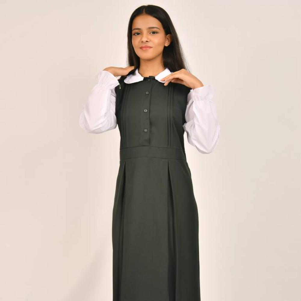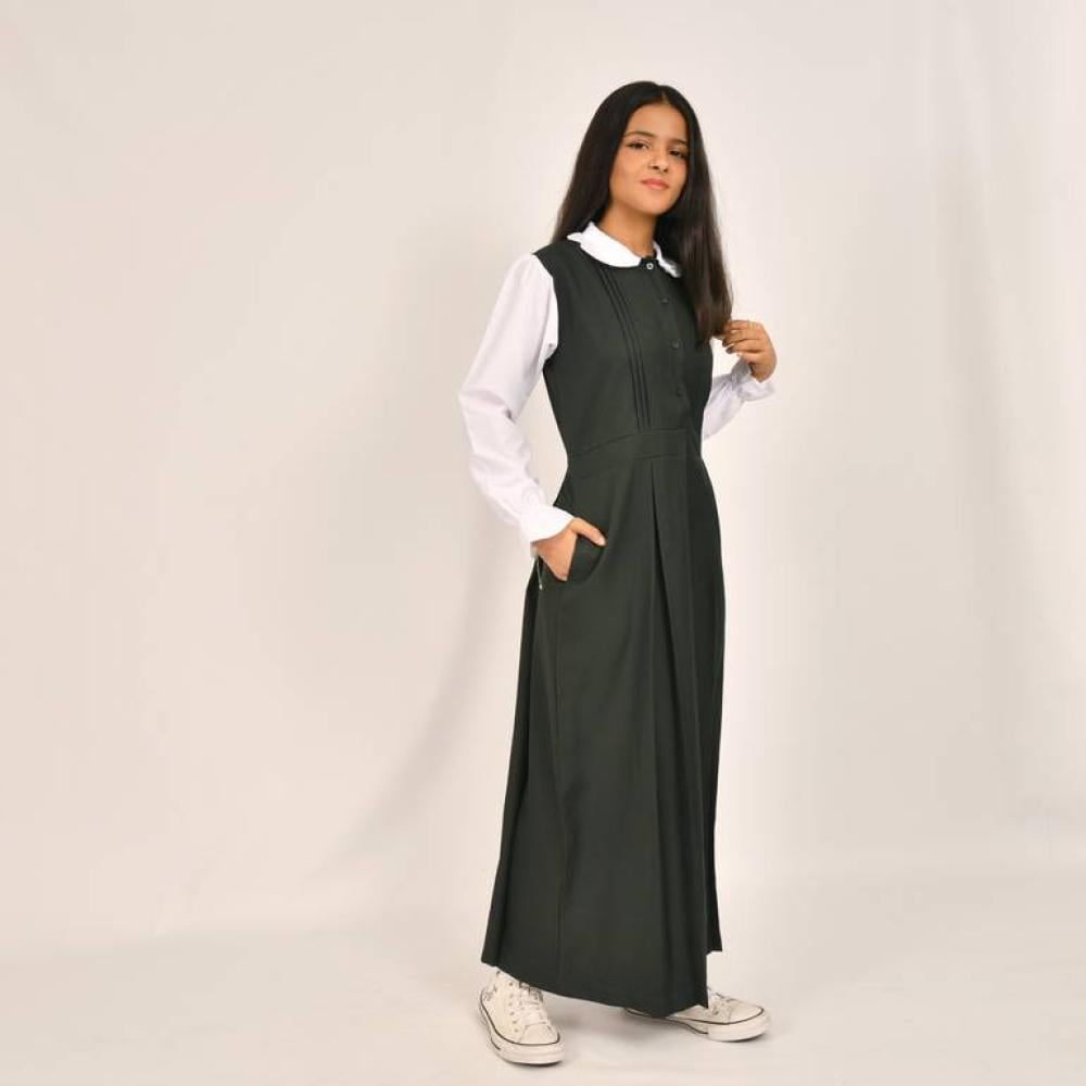 مريول كامل قطعه واحدة اخضر زيتي مع جيب مخفي