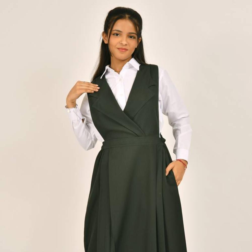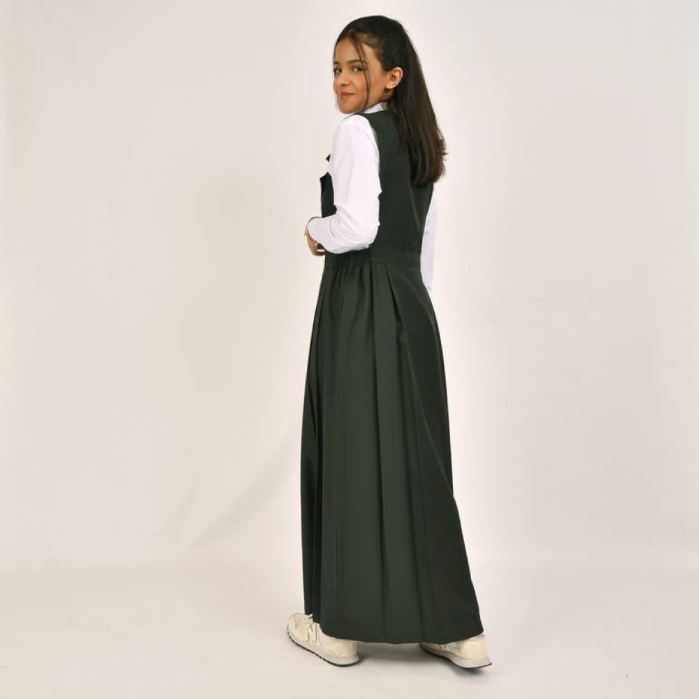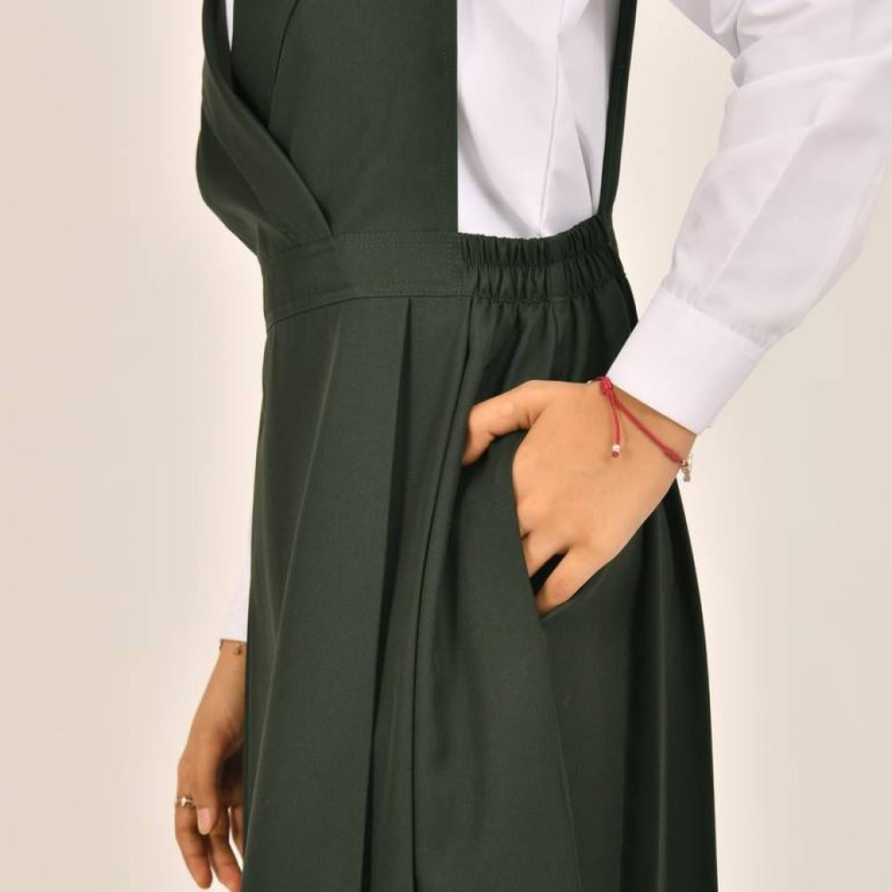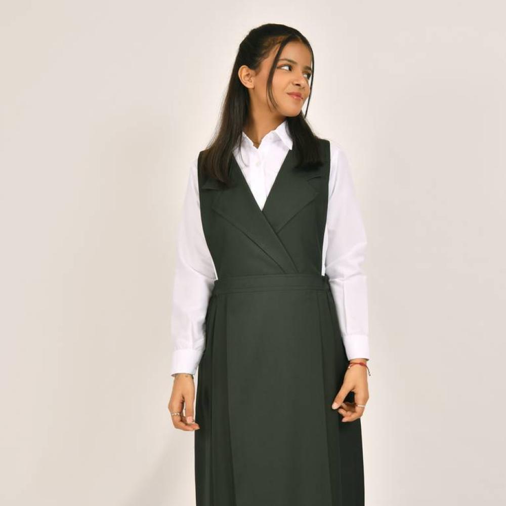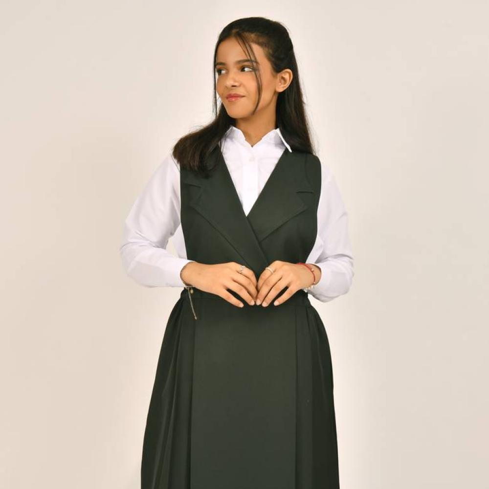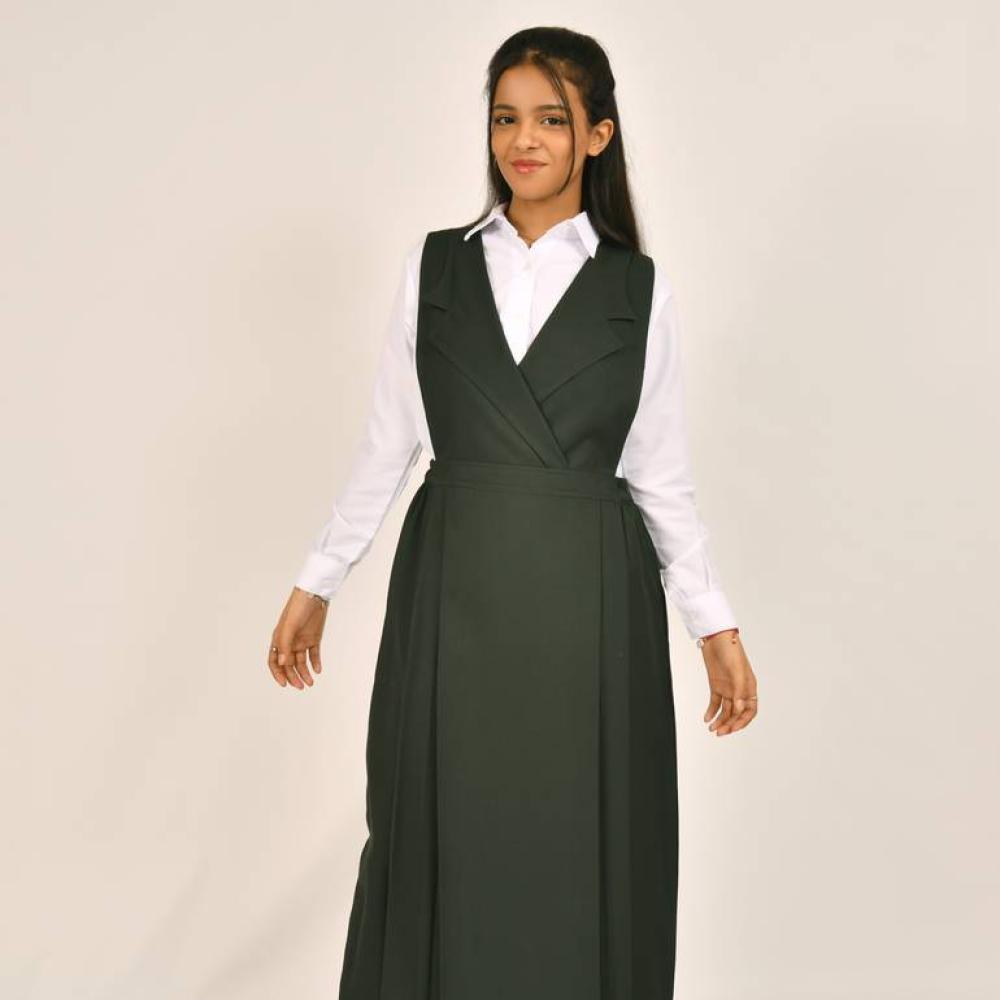 مريول اخضر زيتي بياقة بليزر وزم من الجانبين